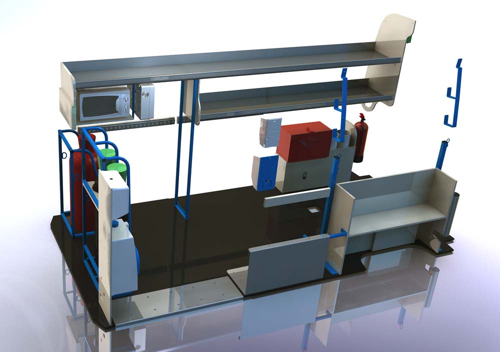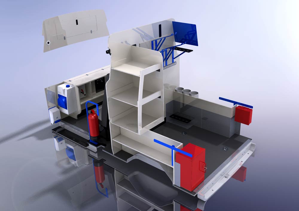 I was involved in the development of a wide range of interior layouts for several high profile clients such as Network Rail and Balfour Beatty, bringing bespoke commercial vehicle interior layouts from basic sketches through to CAD models, CNC prototypes and the finished production vehicle in record time.